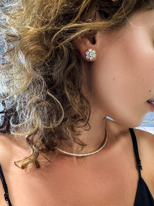 Cluster Stud Earrings - 14K Gold with Diamonds