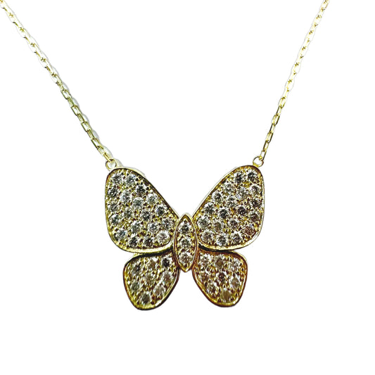 Butterfly Pendant Necklace - 14K Gold with 1.5ct Diamonds