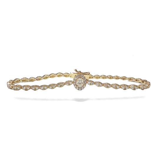 Diamond Halo Center Bracelet - 14K Gold with 2.20ct Diamonds, 7"