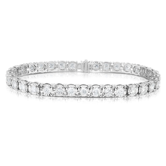 Diamond Cut Illusion Tennis Bracelets - 14K White Gold with Diamonds, 7"
