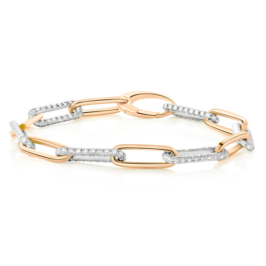 Paper Clip Bracelet - 14K Gold with Diamond-Studded Links