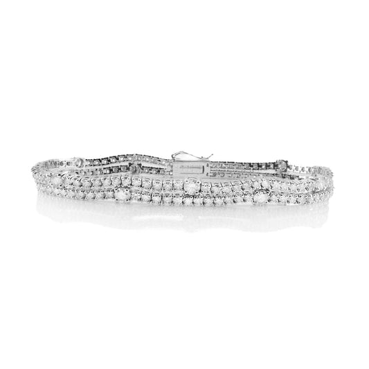 Two Row Station Tennis Bracelet - 5ct Diamonds in 14K White Gold, 7"